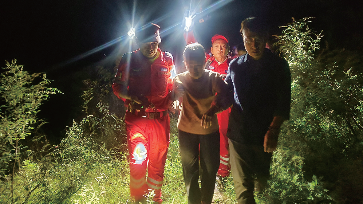 “‘妞妞’在辨識嗅味源后,很快便沖上山坡,沿著小路疾馳,‘小七’也成功鎖定方向。兩條搜救軌跡精準(zhǔn)交疊,共同指向山坡東側(cè)的樹叢區(qū)域。”黨擁軍說,他們迅速分組,攜帶照明設(shè)備、急救物資等,沿著那條通往山上的路展開了地毯式搜尋。