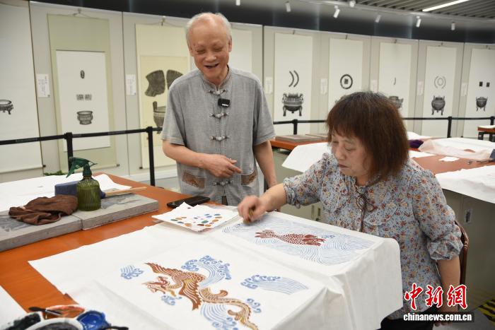 8月27日,在河南鄭州仁清金石傳拓藝術博物館,工作人員正在制作具有吉祥蘊意的高浮雕彩拓文創(chuàng)產(chǎn)品?!⊥跤?攝