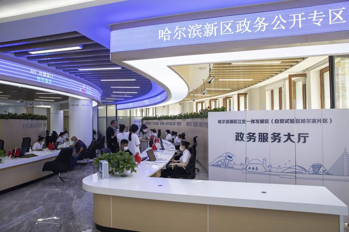 2022年7月12日,市民在黑龍江省哈爾濱新區(qū)江北一體發(fā)展區(qū)(自貿(mào)試驗區(qū)哈爾濱片區(qū))政務服務大廳辦理業(yè)務。新華社記者 張濤 攝