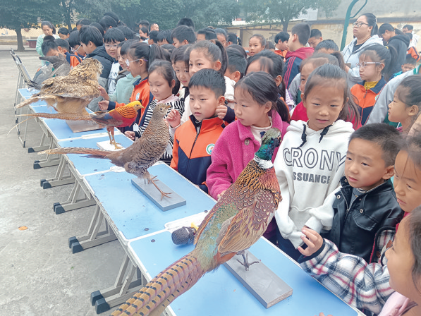 林麝、游隼、紅腹錦雞……活動(dòng)現(xiàn)場(chǎng),一批造型優(yōu)美、神態(tài)逼真的野生動(dòng)物標(biāo)本吸引了學(xué)生。大家近距離觀察猛禽的羽翼、獸類的毛發(fā)等細(xì)節(jié)特征,直觀感受野生動(dòng)物的形態(tài)之美。工作人員從野生動(dòng)物的概念、種類、習(xí)性等方面進(jìn)行講解,用通俗易懂的語(yǔ)言普及野生動(dòng)物保護(hù)知識(shí),穿插真實(shí)案例,讓生態(tài)科普變得更生動(dòng)、有趣。