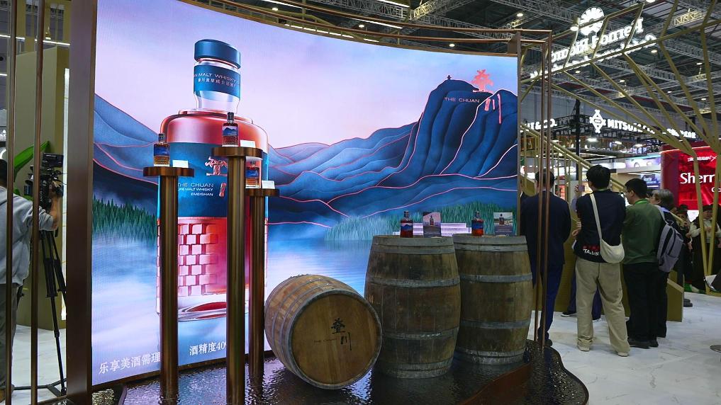 ??國際知名烈酒集團將首款中國原產(chǎn)威士忌疊川放在了展臺“C位”。受訪者供圖