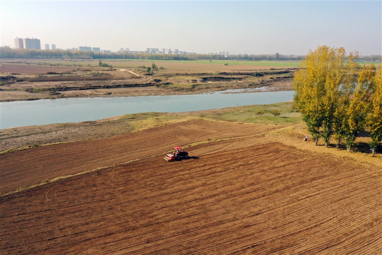 11月16日,沁陽市太行街道東沁陽村農(nóng)民駕駛農(nóng)機在田間播種小麥。楊帆 胡國禮 攝