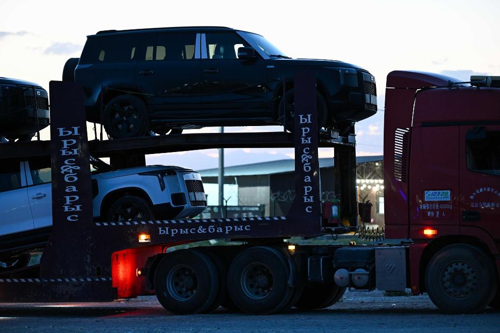??5月22日,運(yùn)輸公司工作人員駕駛從中國(guó)進(jìn)口的新能源汽車駛出哈薩克斯坦口岸,駛向扎爾肯特鎮(zhèn)的中轉(zhuǎn)停車場(chǎng)。新華社記者李任滋攝