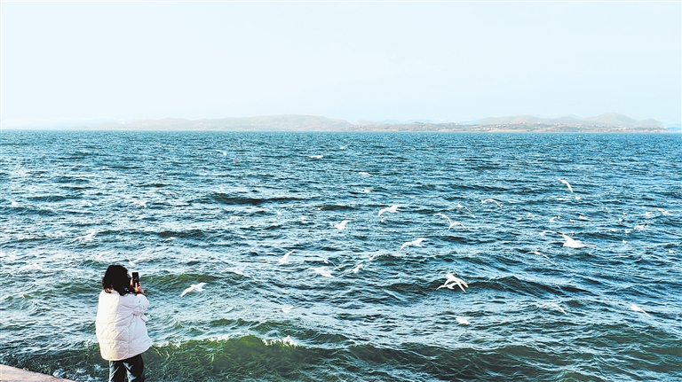 游客在丹江口水庫觀看海鷗。郝凱 攝