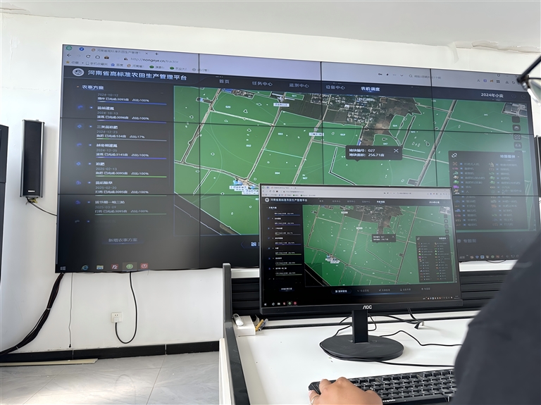 河南省現(xiàn)代農(nóng)業(yè)大數(shù)據(jù)產(chǎn)業(yè)技術(shù)研究院的屏幕上,正呈現(xiàn)著一幅來(lái)自百余公里外的“農(nóng)田數(shù)字孿生圖景”——鶴壁淇縣的智慧農(nóng)場(chǎng)。衛(wèi)星遙感實(shí)時(shí)監(jiān)測(cè)土壤墑情,無(wú)人機(jī)巡檢排查病蟲(chóng)害隱患,田間傳感器持續(xù)采集土壤溫濕度等關(guān)鍵數(shù)據(jù)。這些數(shù)據(jù)經(jīng)由AI算法深度分析,最終生成操作指令,遠(yuǎn)程指導(dǎo)農(nóng)場(chǎng)的標(biāo)準(zhǔn)化生產(chǎn)。