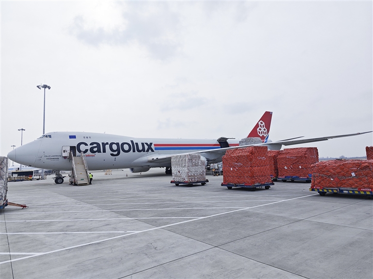 盧森堡貨航貨機(jī)。 河南日?qǐng)?bào)社全媒體記者 徐聰 攝