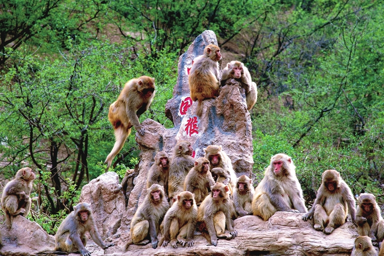 濟(jì)源五龍口風(fēng)景區(qū)太行獼猴成群。