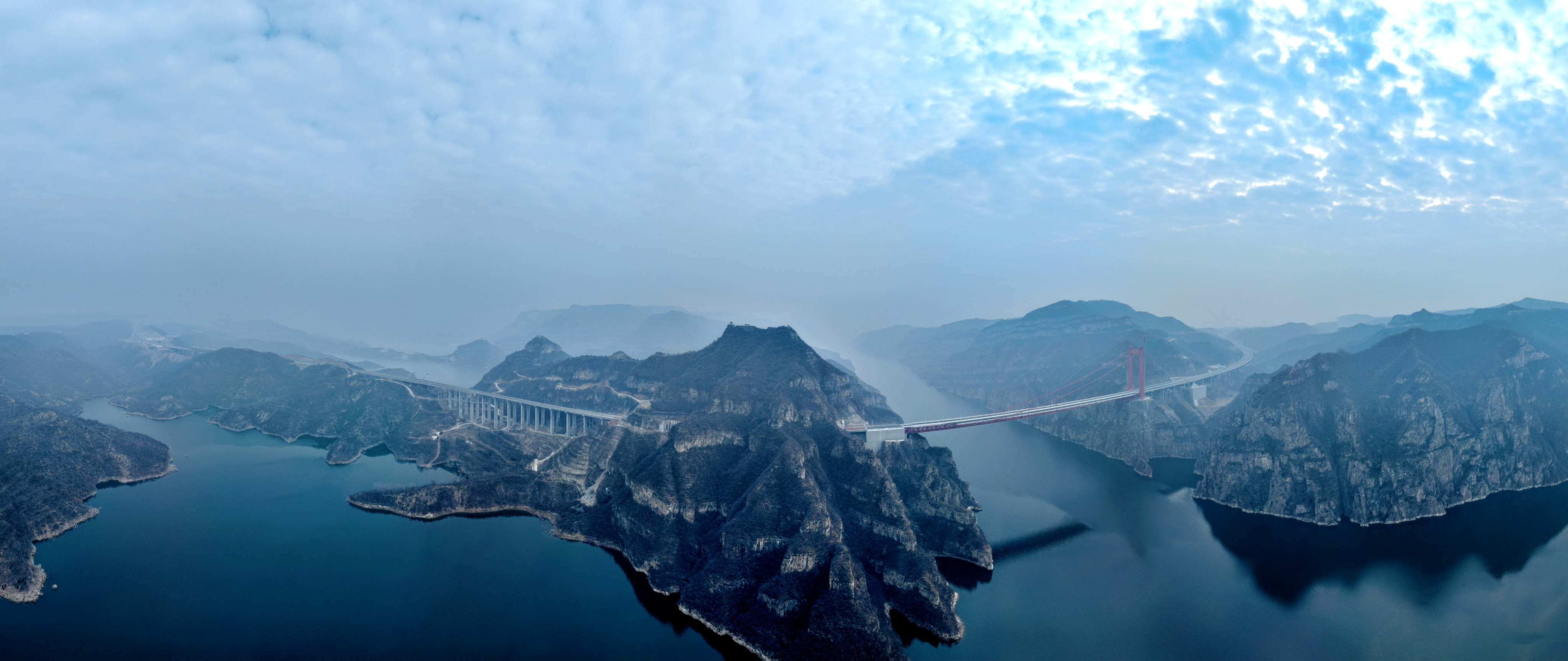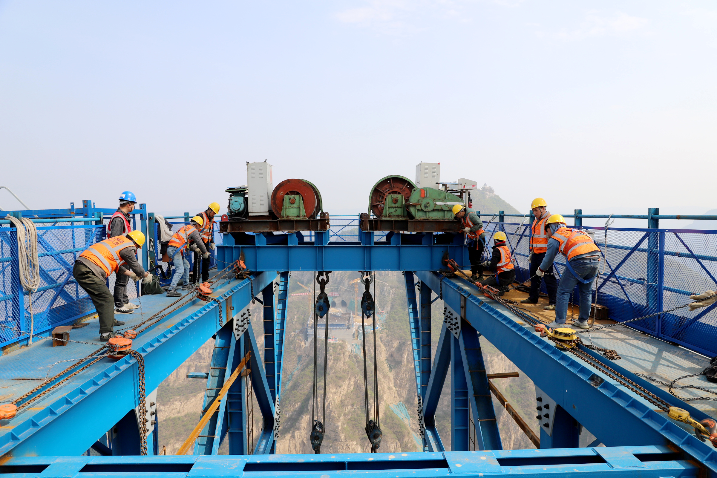 2025年6月10日,黃河三峽大橋鋼桁梁吊裝完成。