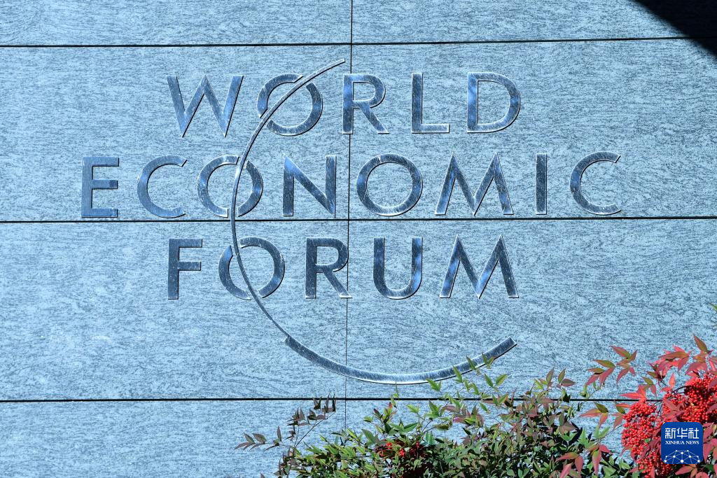 這是1月14日在瑞士日內(nèi)瓦世界經(jīng)濟論壇總部拍攝的世界經(jīng)濟論壇標識。 新華社記者 連漪 攝