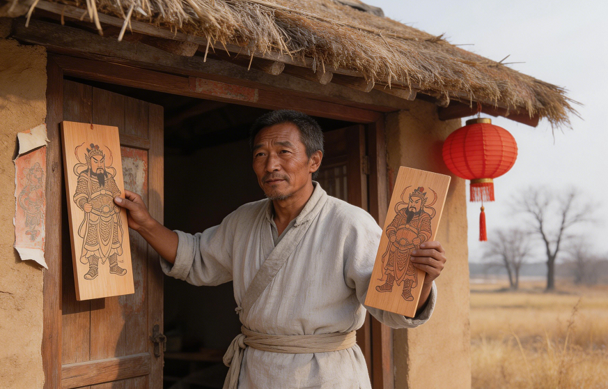 咸豐年間《郟縣志》記載:“除夕,門(mén)張神荼郁壘像,施春帖于棖?!?/p>