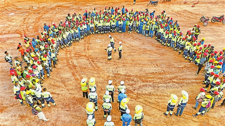 河南國際幾內(nèi)亞港口的建設(shè),帶動(dòng)了當(dāng)?shù)厝司蜆I(yè),僅港口運(yùn)營就有300個(gè)工作崗位,大大提升了當(dāng)?shù)氐木蜆I(yè),改善了民生。圖為2025年4月24日,項(xiàng)目施工前的安全例會(huì)?!⊥鯒澰z