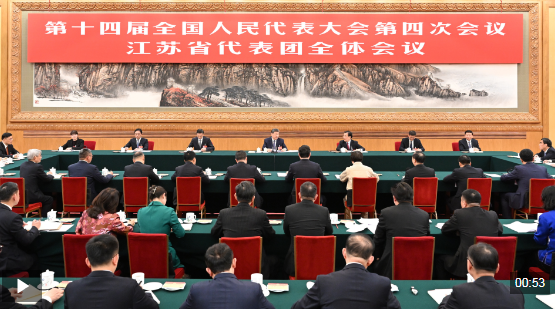5日下午,中共中央總書記、國家主席、中央軍委主席習近平參加他所在的十四屆全國人大四次會議江蘇代表團審議。