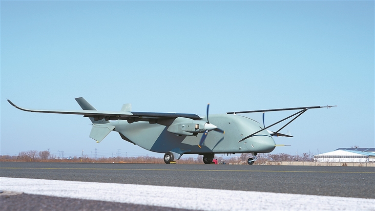 全球最大貨運(yùn)無(wú)人機(jī)“長(zhǎng)鷹-8”在鄭州上街機(jī)場(chǎng)首飛。 北方長(zhǎng)鷹供圖