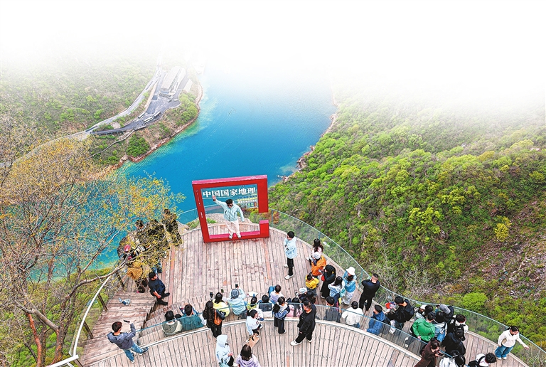 清明時(shí)節(jié),太行山褪去蒼灰換上春裝。河南寶泉景區(qū)里,丹崖天路上徒步者絡(luò)繹不絕;懸崖過山車上,興奮的尖叫聲直沖云霄;碧波潭水邊,親子家庭彎腰戲水,濺起朵朵水花……“春天不來太行山,總覺得辜負(fù)了這個(gè)季節(jié)。”一位從鄭州自駕而來的戶外愛好者邊調(diào)整運(yùn)動(dòng)相機(jī)邊說,“這次專門來走丹崖天路,順便挑戰(zhàn)一下飛拉達(dá)?!?/p>