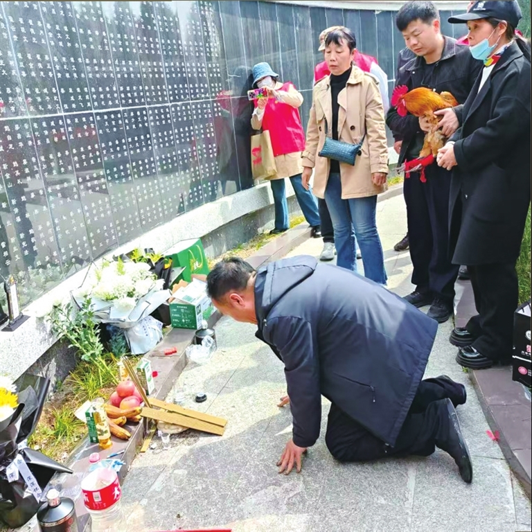 他們按照老家習(xí)俗,從家里帶了一只活雞,在烈士墓前,讓雞鳴聲引路,引領(lǐng)英魂歸鄉(xiāng)。祭拜結(jié)束后,他們將雞帶回老家,在奶奶和那塊磚頭合葬的墓前放生。
