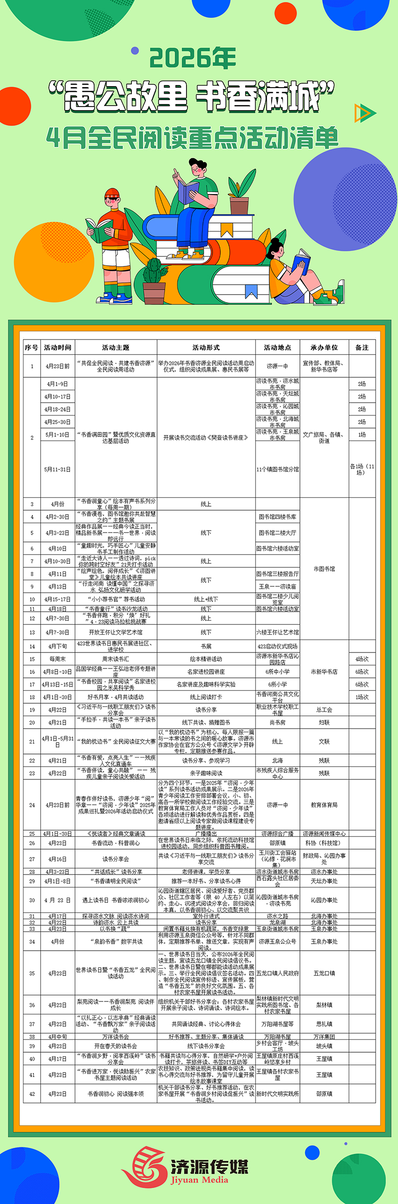 2026年“愚公故里 書香滿城”4月全民閱讀重點(diǎn)活動清單