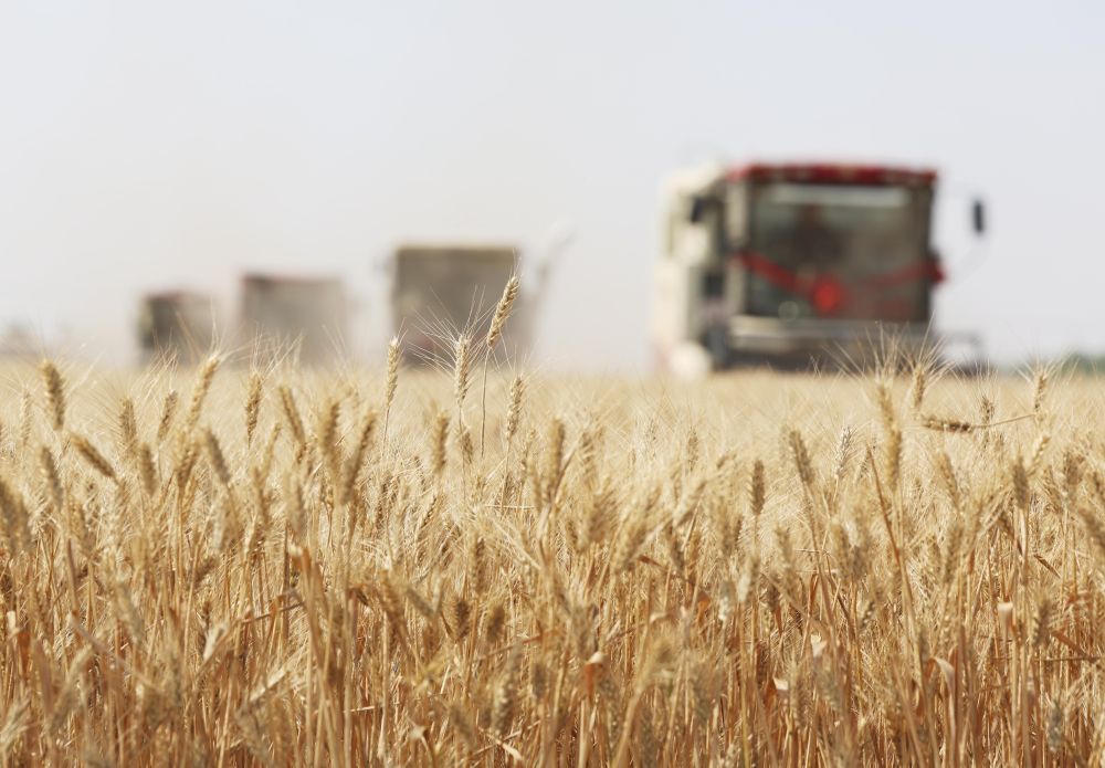 2025年6月10日,河北省石家莊市欒城區(qū)柳林屯鄉(xiāng)東牛村村民駕駛農(nóng)機收割小麥。新華社發(fā)(梁子棟 攝)