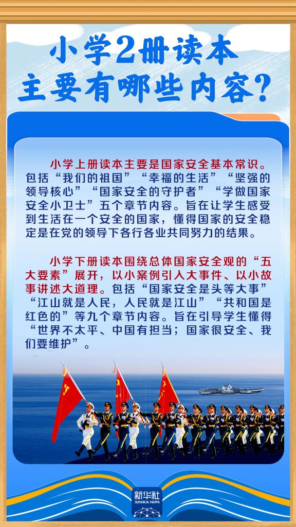 ??今天是4月15日,第十一個(gè)全民國家安全教育日。近日,專為青少年學(xué)生編寫的《國家安全教育中小學(xué)生讀本》(以下簡(jiǎn)稱“讀本”)由人民出版社與人民教育出版社聯(lián)合出版發(fā)行。這套讀本包括哪些主要內(nèi)容?是如何編寫的?提到了哪些國家安全領(lǐng)域?跟隨海報(bào),一起了解。