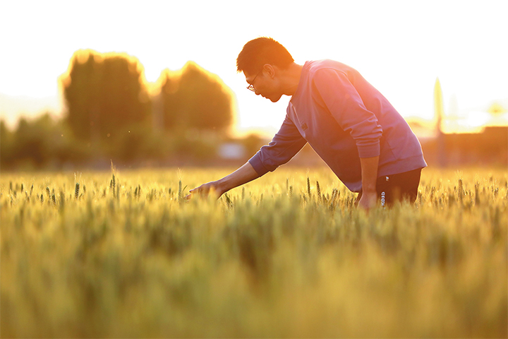 4月25日,農(nóng)民在克井鎮(zhèn)大東許村麥田查看小麥長勢。